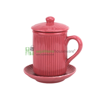 Cangkir Tutup White Line Safira+Tatakan