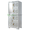 Fitur: Dilengkapi dengan cermin kaca, 4 susun/hambalan, biasanya memiliki kunci.